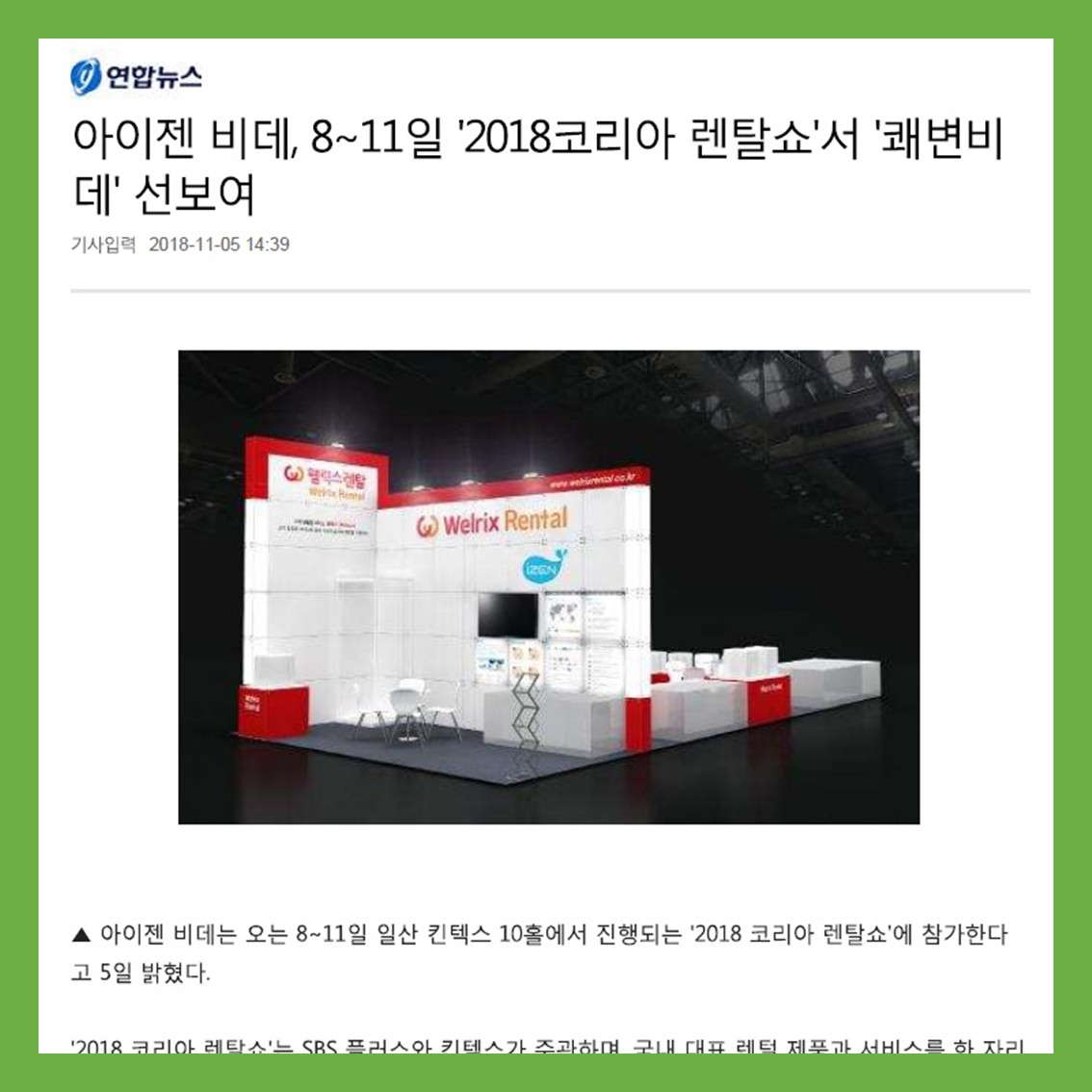 [연합뉴스] 아이젠 비데, 8~11일 '2018코리아 렌탈쇼'서 '쾌변비데' 선보여