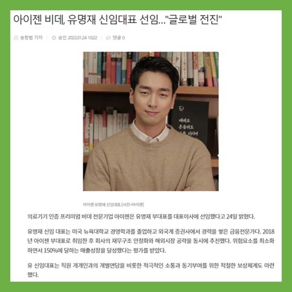[신아일보]아이젠 비데, 유명재 신임대표 선임…"글로벌 전진"
